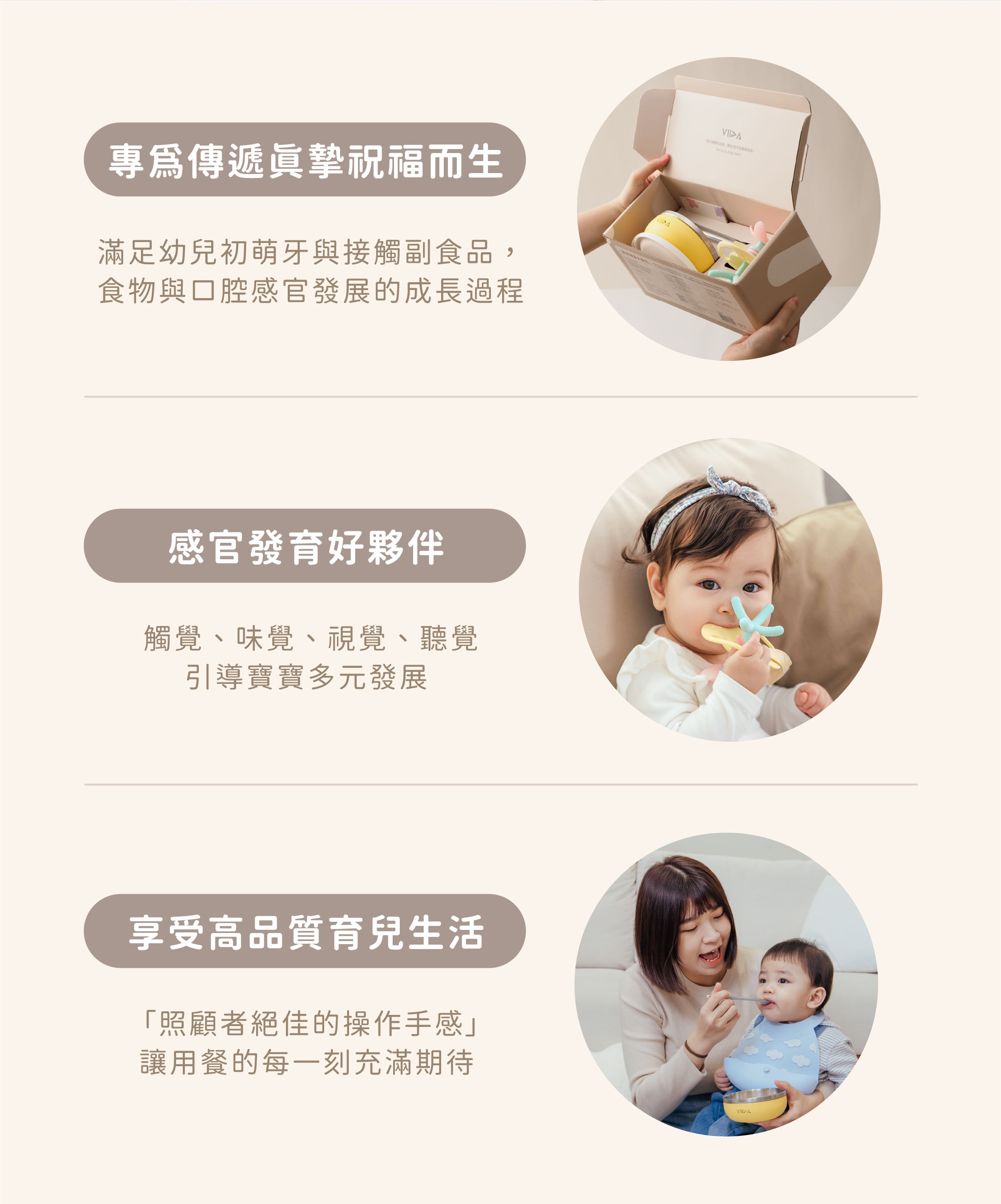 幫助寶貝從副食品、餵食到感官探索,陪伴寶寶開啟美好的成長之旅。
