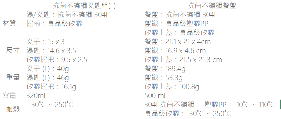 此組合內含: Soufflé 抗菌不鏽鋼餐盤*1+叉匙組(L)*1