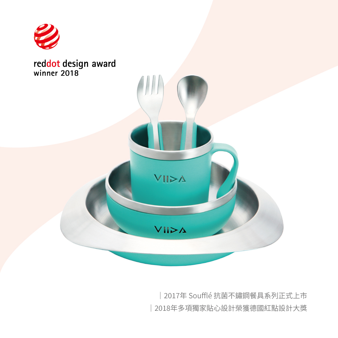 Soufflé抗菌不鏽鋼套組:內含 Soufflé餐盤、餐碗、杯、叉匙組(S)。