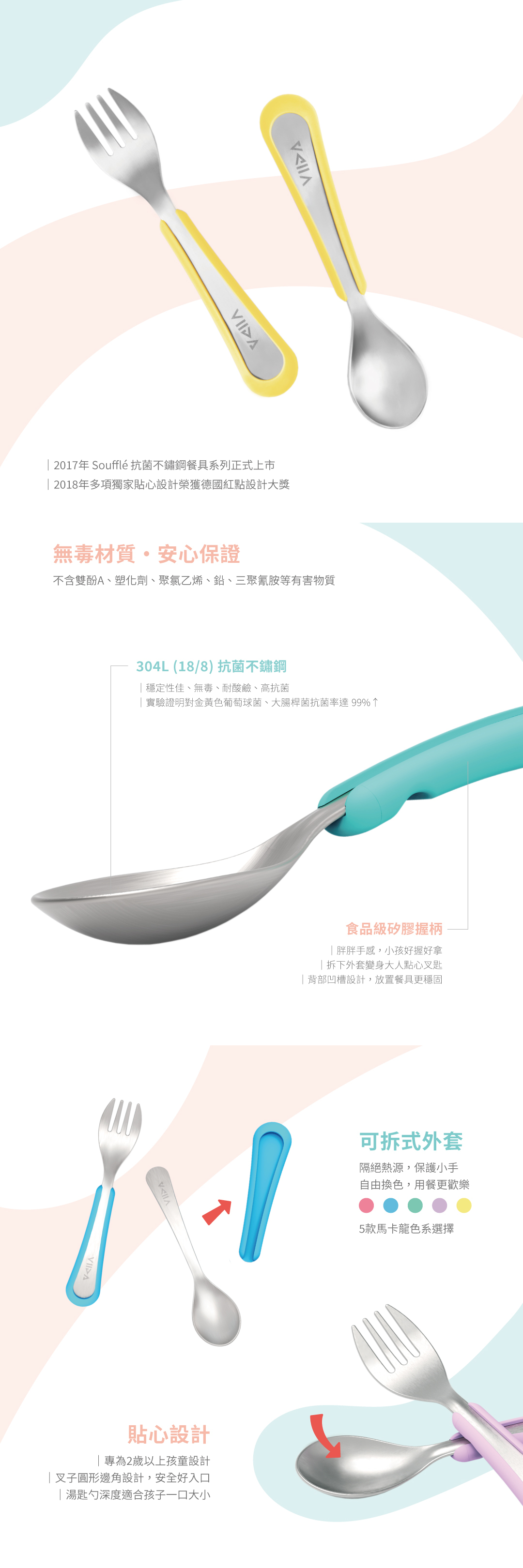 | 材質 | 湯/叉匙:抗菌不鏽鋼 304L 握柄:食品級矽膠 | ||