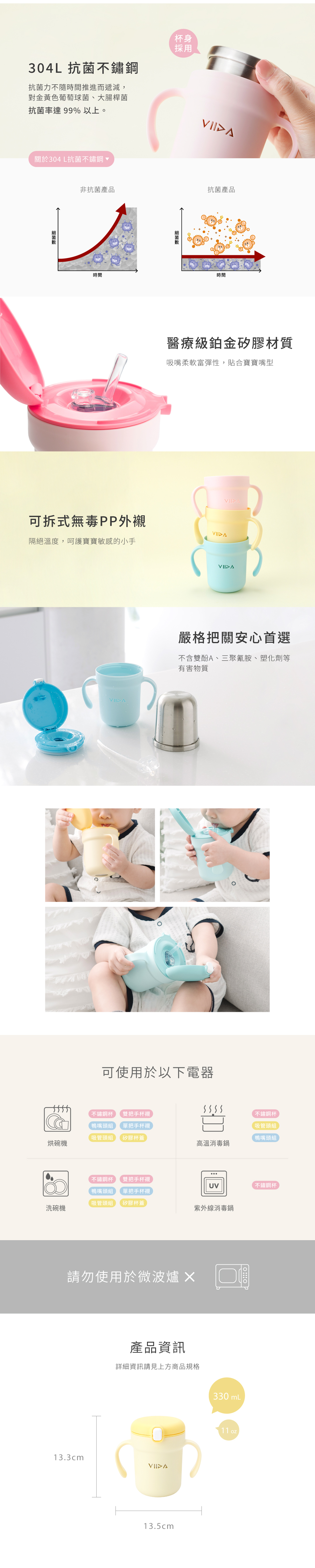 | 304L 抗菌不鏽鋼 | PP外襯 | 矽膠吸嘴/吸管 | |